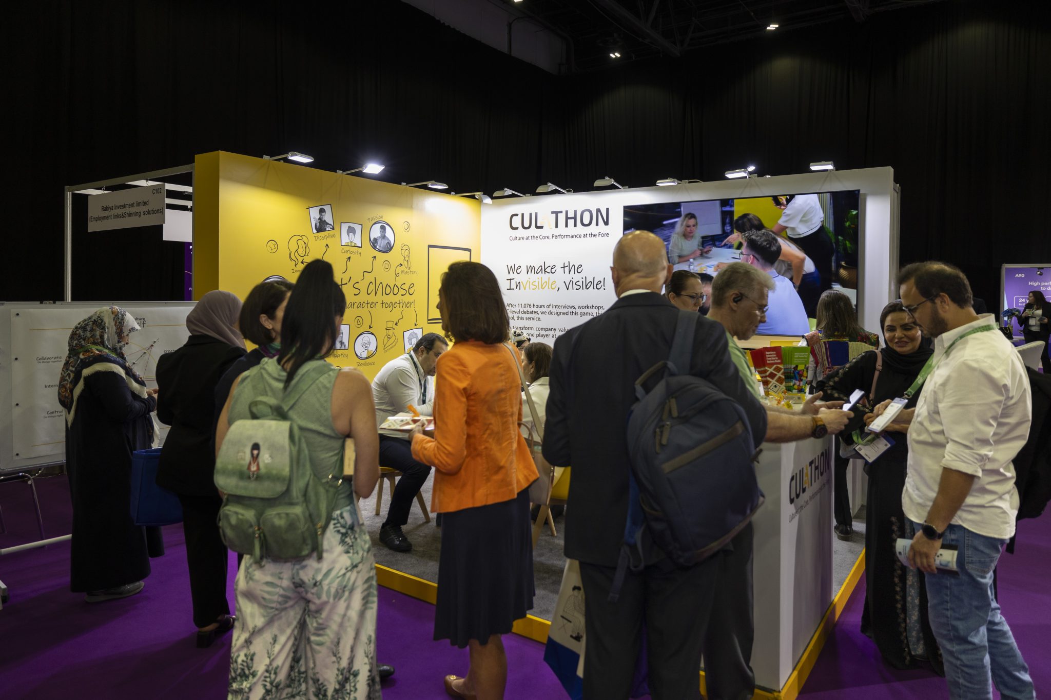 HR leaders, consultancies, and professionals from insurance, energy, and trading—a cross-industry mix that kept the booth standing-room-only at peak times.